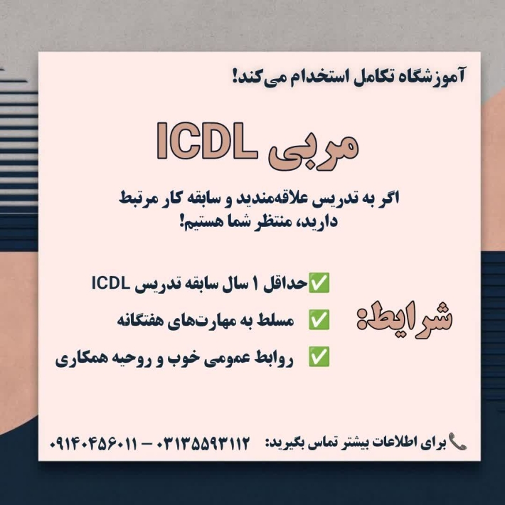 استخدام مربی کامپیوتر و icdl در اموزشگاه فنی حرفه ای