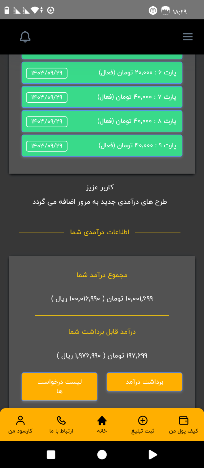 درآمد بیشتر: دوستانتان را با کد معرف خود دعوت کنید. هرچه آنها فعالتر باشند، درآمد شما هم بیشتر میشود!