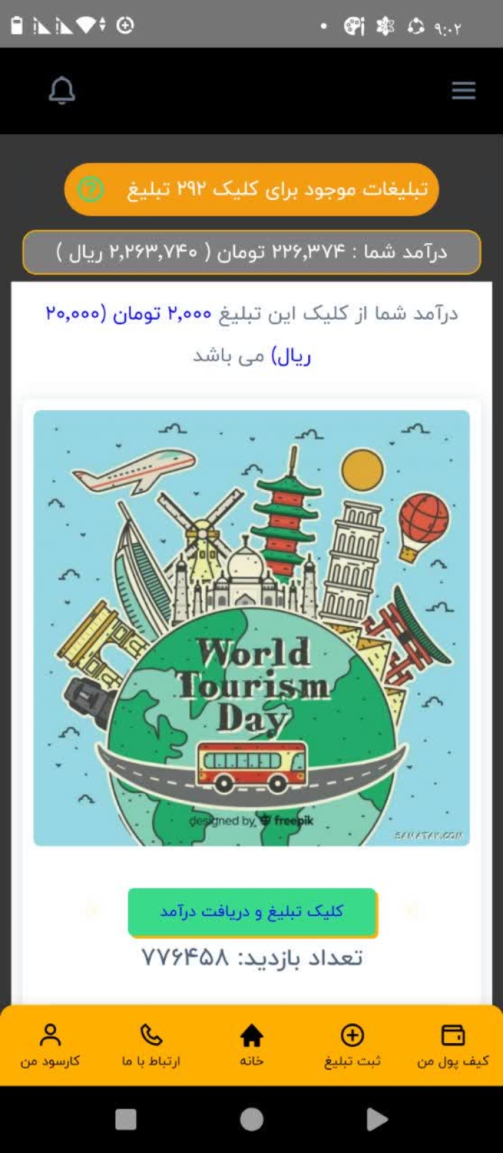 برداشت آسان: وقتی به 100 هزار تومان رسیدید، درآمدتان را برداشت کنید یا شارژ و بسته اینترنت بگیرید.