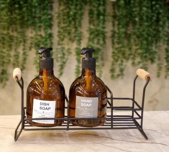 این استند با طراحی دوقلو امکان نگهداری دو نوع مایع شوینده را به صورت منظم و بهداشتی فراهم میسازد