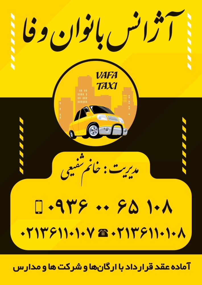 تاکسی سرویس بانوان وفادر محدوده قرچک و حومه اماده خدمت رسانی به بانوان و سالمندان و کودکان با مجرب ترین راننده ها و ایمنی و امنیت کامل برون شهری و شهری اماده عقد قرارداد با ارگانها و ادارات و مدارس غیره…