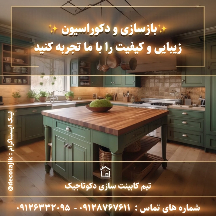 ارائه انواع خدمات دکوراسیون ( کابینت ، کمد دیواری، انواع میز ، …) و بازسازی کامل منزل یا محل کار