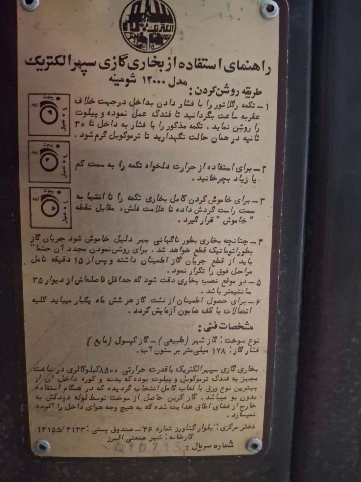 بخاری گازی 12000 سپهر الکتریک مدل شومینه