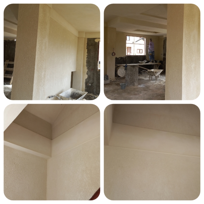 کف سازی+دیوار چینی+سیمان سیاه و سفید زدن دیوار+اجرای واش بتن+اجرای جدول بتنی