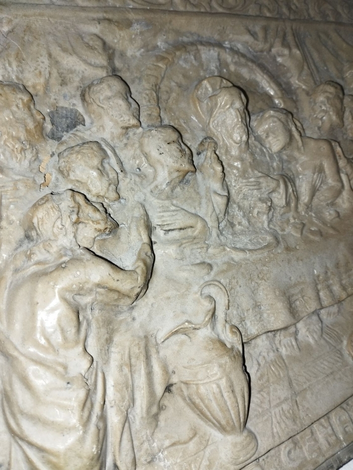 تابلوی شام آخر ساخته شده با عاج قدمت بالای 300 سال کار کرده دور قاب نقره کاری شده زیر قیمت گذاشتم که هرکس برد مبارکش باشه شاهکاری از اروپا تاریخ و شناسنامه اش هم زیر تابلو قید شده فقط 400 میلیون تومان
