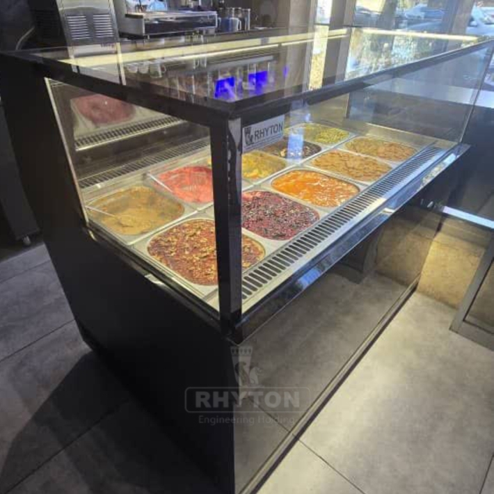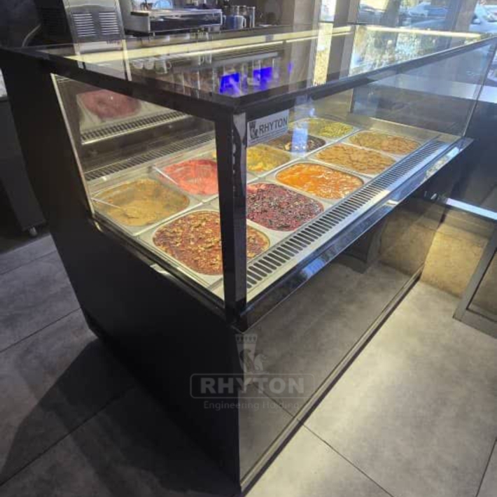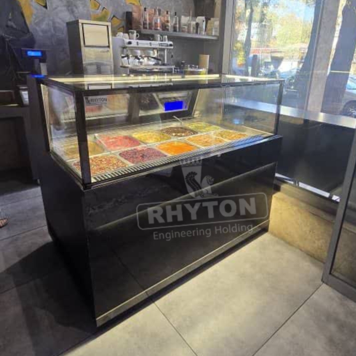 تاپینگ دسر RHYTON برای سرو حرفه‌ای و نمایش جذاب دسرها؛ سرمایش یکنواخت، مصرف بهینه انرژی و طراحی صنعتی برای قنادی‌ها و کافه‌ها.