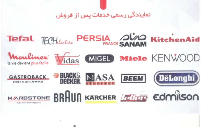 نمایندگی رسمی خدمات پس از فروش لوازم خانگی دلونگی و فلر و راک و بلک اندرکر و کنود و براون و ناسا و بیم و مولینکس و هاردیستون و ویداس و کارشر و کچین اید و گاستروبک و پرشیاو موزر و صنام و میگل و سوئیس پلاس و ویلفورد و ادمیلسون و زیکوو زینو سرویس و ترام هاوس و ویکند و وولن و کوخ و مونزا و نیولند ومیله و برویل و ویلز و اگزیدو ...