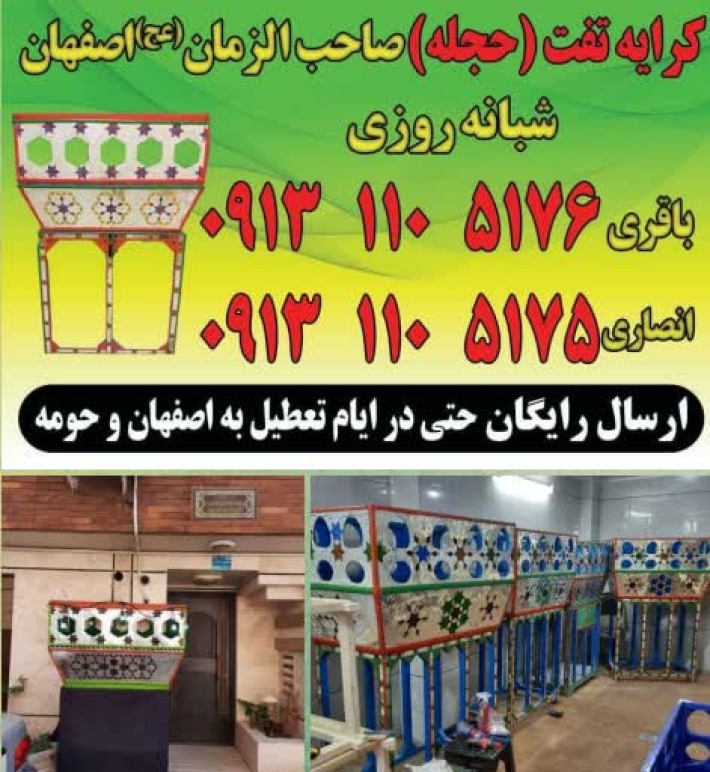 کرایه تفت (حجله) برای مرحوم و شهیدان زیر نظر خیریه اصفهان و قادر به همکاری با همه خیریه های اصفهان و همکاران عزیز هستیم