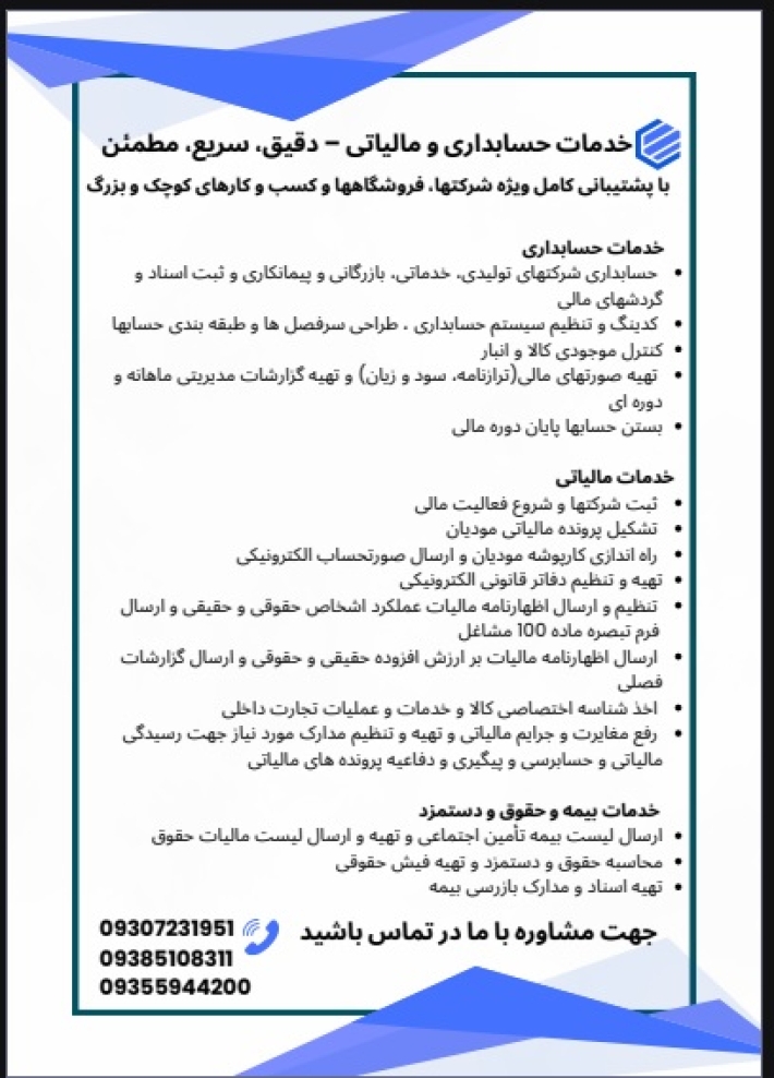 خدمات حسابداری و مالیاتی – دقیق، سریع، مطمئن»