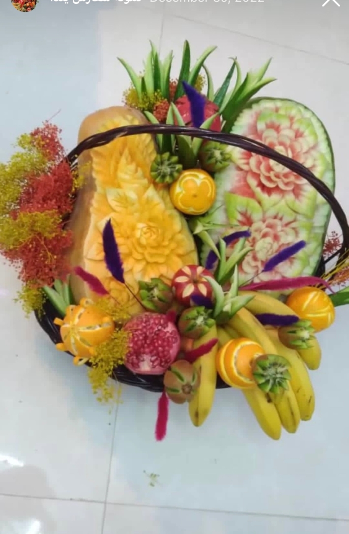 حکاکی هندوانه و کدو ،سبد میوه آرایی شده،دیزاین هدایای عروس برای شب یلدا،