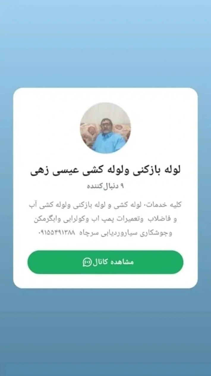 کلیه خدمات0 لوله کشی و لوله بازکنی وتعمیرات پمپ آب و ابگرمکن وکولرابی وردیابی سرچاه عیسی زهی***********