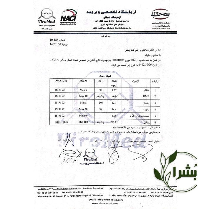 🔸عسل چند گیاه دشت نیشابور؛ بِکر و حرارتندیده؛ دارای برگه آزمایش