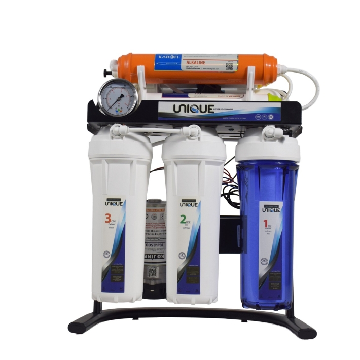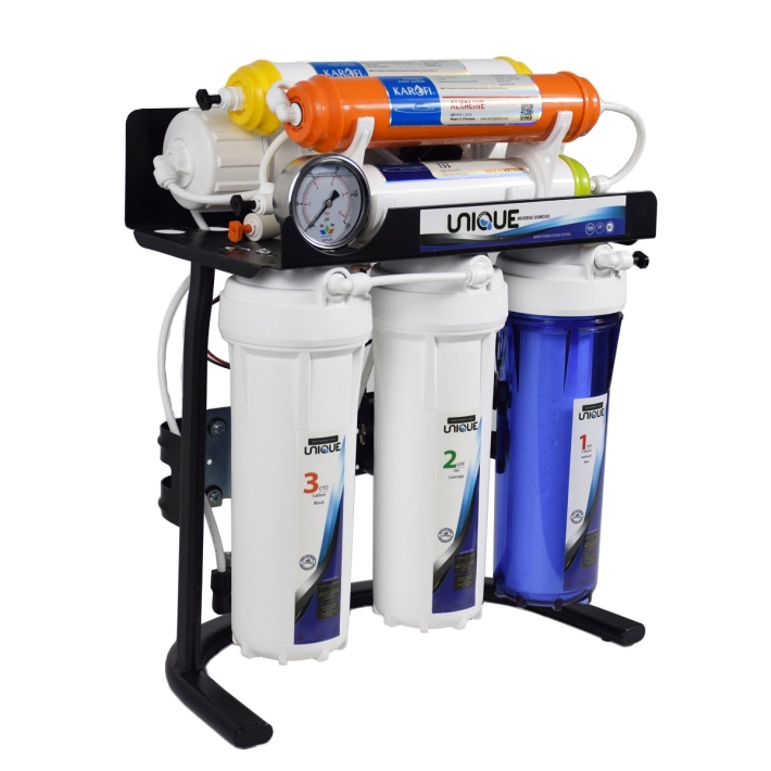 سیستم 7 مرحلهای فیلتراسیون: دستگاه یونیک از هفت مرحله تصفیه پیشرفته برخوردار است که شامل پیش فیلترها، ممبران اسمز معکوس، فیلتر مینرال، قلیایی کننده و کربن نهایی میشود.