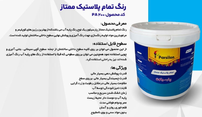 گروه صنایع آتاشیمی آسیا با نام تجاری پارسیلون تولیدکننده انواع رنگ و پوشش های ساختمانی پایه آب و روغنی با استفاده از به روزترین سیستم های تولید رنگ با کیفیتی بالاتر از سطح استاندارد جهانی آماده خدمت رسانی به مشتریان عزیز می باشد.
