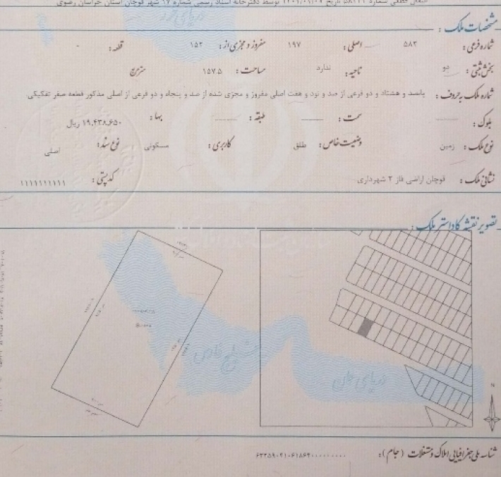 زمین تک برگ سند کوچه پنجم خیابان تلاشگران