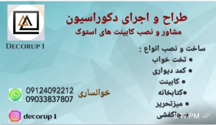 تمام اقلام چوبی مانند: کابینت ، کمد دیواری ، تخت خواب ، میز تحریر ، جاکفشی ، دراوه و ... انجام می شود با بهترین متریال و با بالاترین کیفیت با مبلغی مناسب