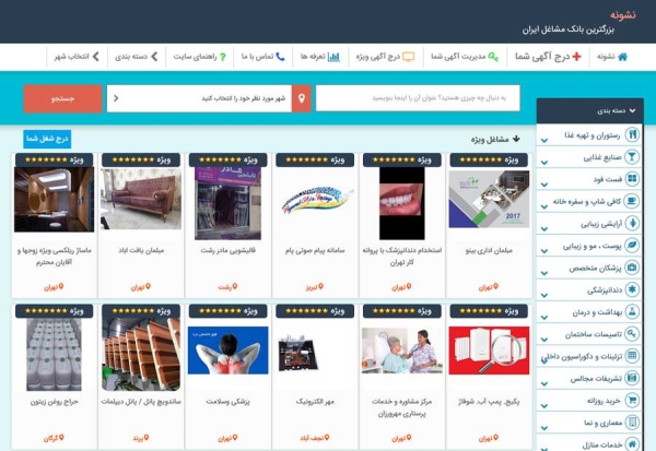 ، یک بانک اطلاعاتی مشاغل است که کمک می کند راحتر، اطلاعات صاحبان مشاغل را در هر نقطه از کشور، بیابید و همچنین صاحبان مشاغل ، شغل خود و محصولات و خدماتی را که ارائه می دهند روزانه به هزاران نفر نمایش دهند. درنظر داشته باشید تبلیغات به شما کمک می کند تا برند خود را معرفی کنید، فروش خود را افزايش دهيد، كالا و خدمات خود را معرفي كنيد. همچنین تبليغات موجب افزايش آگاهی مردم نسبت به یک محصول مي شود. در