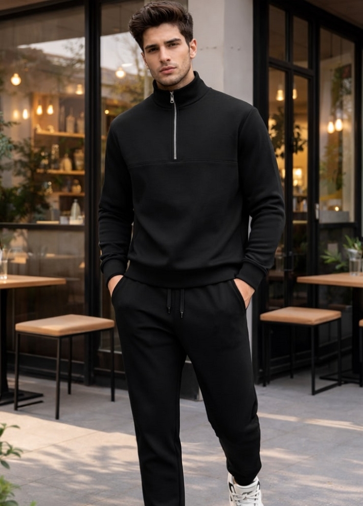 ست مردانه نیم زیپ و شلوار جاگر مدل Behshad-مشکی ویژه