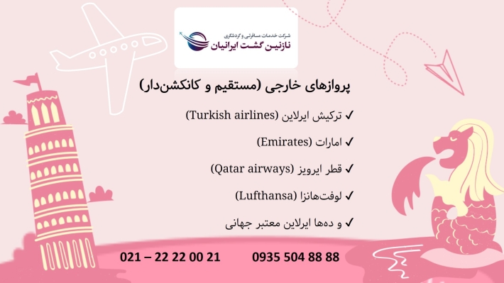 ✈ صدور آنی انواع بلیت پرواز با نازنین گشت
