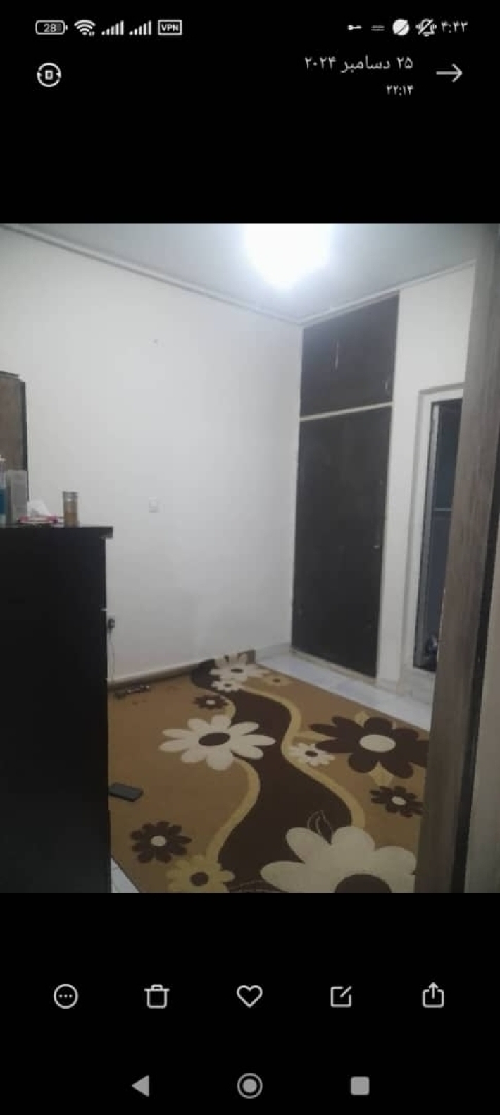 75متر،چهارطبقه،هرطبقه دوواحد،دارای کابینت ام دی اف،کف سرامیک،دوخوابه،هرخواب دارای کمددیواری،ابزار،تازه رنگ شده،دارای بالکن،نوردهی عالی،دارای برق،گاز،آب،دسترسی به مدرسه،مغازه،فروشگاه،میوه فروشی،مترو،پنج دقیقه،دارای پارکینگ جلوی درب خانه،به مشتری واقعی تخفیف میدم