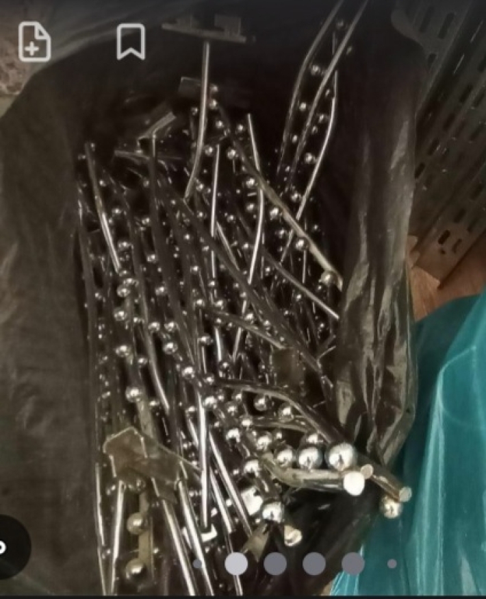 باسلام تعداد 7 عدد رگال چرخان ابعاد 120 و 90 تقریبا تمیز شاخه و میله گوی دار اویز لباس از نوع ضخیم و نازک و تعدادی خرده ریز یکجا یا تکی بفروش میرسد قیمت رو راه میام