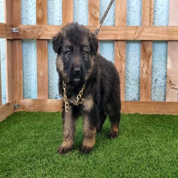 3. **رنگ:** توله‌های ژرمن بلک مو بلند دارای رنگ سیاه با گاهی علامت‌های سفید روی سینه یا پاها می‌باشند. این رنگ به آن‌ها زیبایی و جلوه خاصی می‌بخشد.