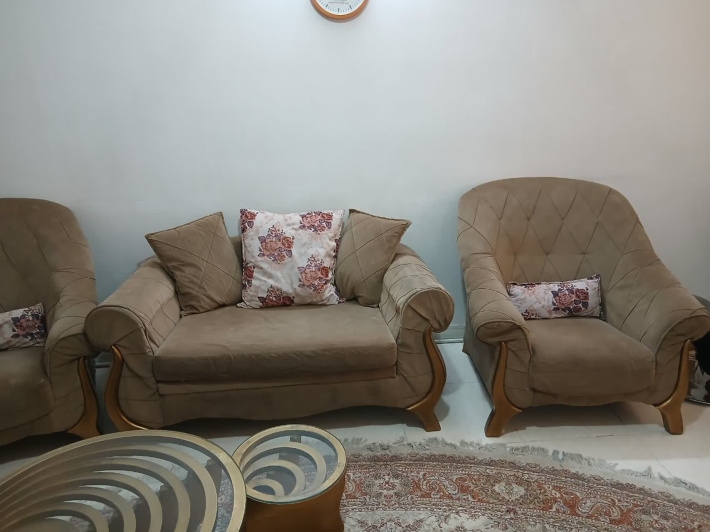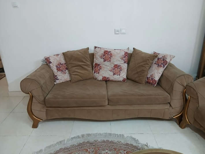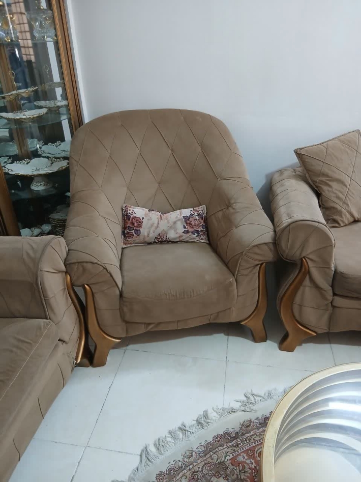 مبل سه نفره یکی از پایه هاش شکسته و قابل تعمیر هست جاکفشی قدی جلو مبلی