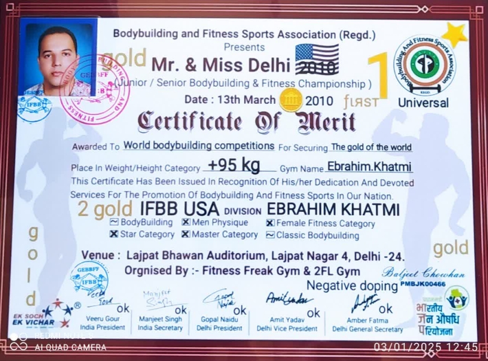 دارنده مدرک مربی گری بدنسازی از آمریکا