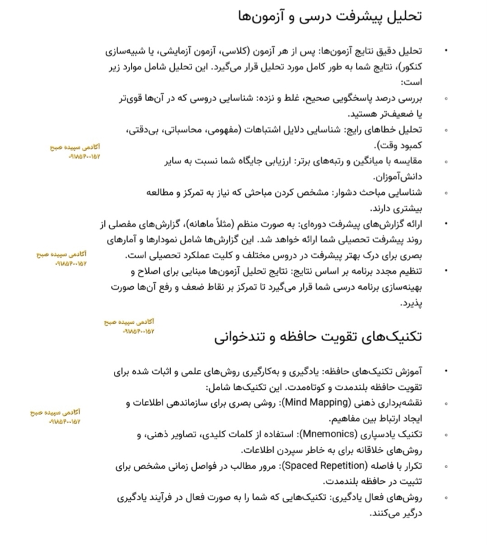 * **با برنامه ریزی تحصیلی دقیق و روزانه، مسیر موفقیت را هموار کند.**