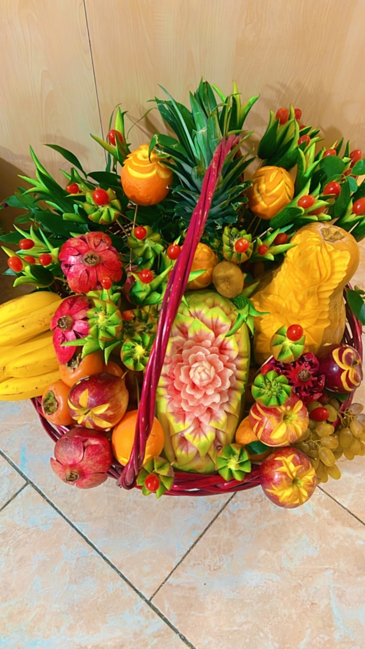 تزیین هندوانه و کدو،دیزایین سبد میوه و هدایای عروس،گل آرایی،تزیین لبو