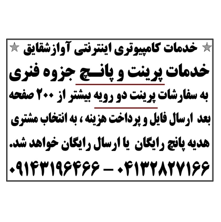 پرینت تک رو 20 تا 100 عدد 1500 تومان