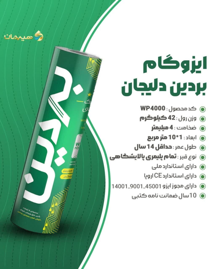 هیرمان: با وجود کیفیت برتر، ایزوگام هیرمان تلاش میکند تا محصولات خود را با قیمتی رقابتی و منصفانه عرضه کند. شما با انتخاب هیرمان، نه تنها یک محصول باکیفیت خریداری میکنید، بلکه سرمایهگذاری هوشمندانهای برای آینده سازه خود انجام میدهید.