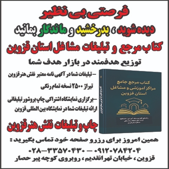 جهت کسب اطلاعات بیشتر ، مشاوره رایگان و رزرو آگهی همین الان تماس بگیرید.