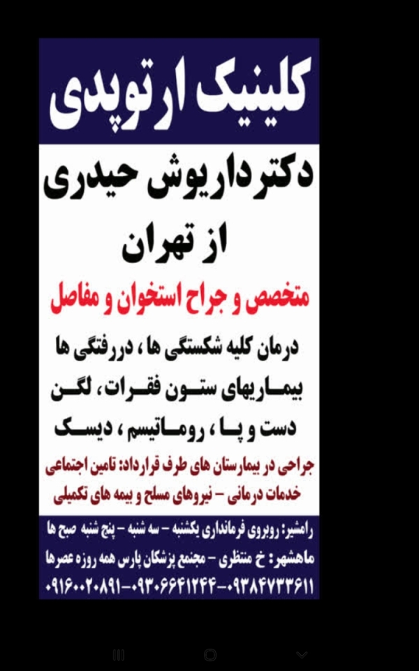 کلینیک ارتوپدی دکتر داریوش حیدری