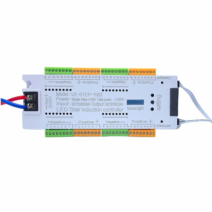 کنترلر نورپردازی راه پله 32 کانال دستگاهی است که برای کنترل روشن و خاموش شدن چراغ ها در راه پله استفاده می شود. این نوع کنترلرها معمولاً با سنسورهای حرکتی کار می کنند که وقتی شخصی از پله ها بالا یا پایین می رود، چراغ ها را به طور خودکار روشن می کنند. این امر می تواند به صرفه جویی در مصرف انرژی و همچنین افزایش ایمنی کمک کند. کنترلر 32کانال هوشمند راه پله عبارتند از: