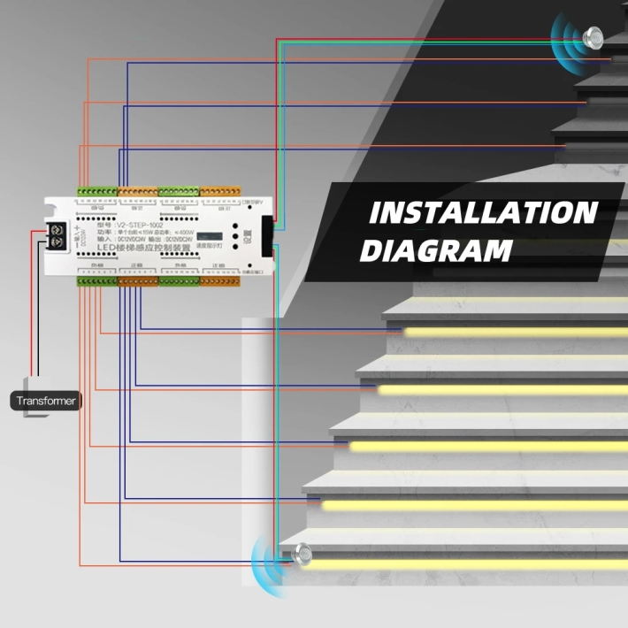 کنترلر هوشمند راه پله روشنایی راه پله را در صورت تشخیص حرکت کنترل میکند.
