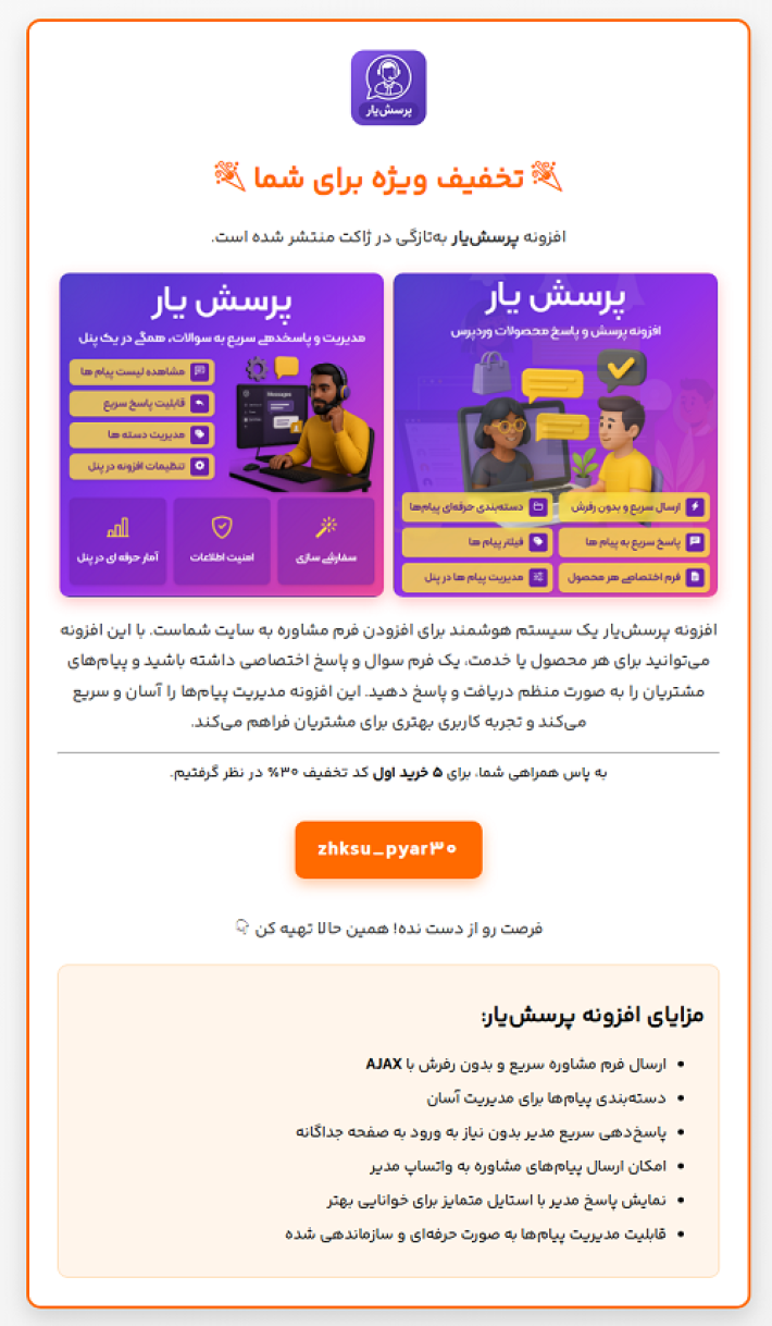 🎁 کد تخفیف 30٪ ویژه 5 نفر اول: